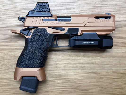 Neben Metallen können auch Kunststoffe beschichtet werden, was eine einheitliche Farbgebung aller Teile einer Waffe ermöglicht.